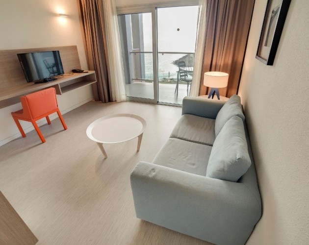 Im Riviera Vista haben wir 44 Junior Suite. Alle mit Meerblick, zwischen 44 und 46 m2 groß und mit Balkon oder Terrasse ausgestattet mit Gartenmöbeln. Die Maximalbelegung beträgt 3 Erwachsene.